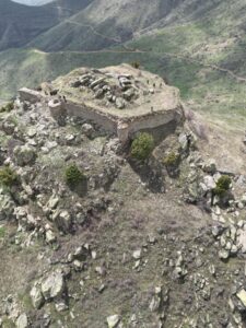 Սպիտակավոր վանքի ուղիղ դեմդիմաց, հարավային կողմում, մոտ 1 կիլոմետր հեռավորությամբ, բարձրանում է դեպի երկինք մխրճված մի լեռնազանգված, որը բոլոր կողմերից ունի զառիվեր լանջեր։ Այդչափ հեռավորությունից դժվար է պատկերացնել, որ նման անառիկ լեռնագագաթի հարթության վրա ժամանակին բարձրացել է իշխանական ու իշխանանիստ բերդ, որ մարդկային միտքն ու ձեռքն ի զորու է գտնվել՝ գլխատպույտ ու երկյուղ առաջացնող այսպիսի բարձունքում նման հզորագույն կառույց կատարելու։