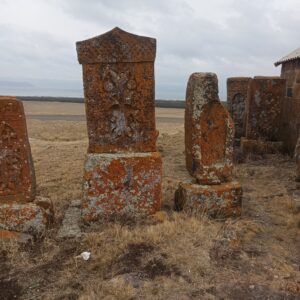 Անվանի վիմագրագետն այս հնավայրում վերծանել է 7 խաչքարի եւ 3 տապանաքրի վրա պահպանված վիմագրերը։ Մնացած խաչքար-տապանաքարերը, որոնց թիվ հասնում է մի քանի տասնյակի, անարձանագիր են, սակայն իրենց պատրաստման ոճով համընկնում են 13-17-րդ դարերի քանդակներին։