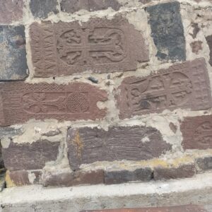 Բակի արեւմտյան մասում պահպանված խաչքարի քիվին պահպանված է 1 տողանի արձանագրություն․ «Սուրբ Խաչս բարեխոս Տեր Մաթոսին։