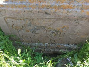 Այն խոշոր է, բարձրիկ, ուղղանկյունաձև ու պատկերազարդ: Քանդակազարդ են ներքևից երկրորդ շարքի ուղղահայաց նիստերը, որտեղ պատկերված են վիշապամարտի տեսարաններ, այծերի ու անթամբ նժույգի բարձրաքանդակներ: Վերին` հորիզոնական, նիստը անզարդ է ու անարձանագիր: Արաբատառ թվակիր արձանագրությունը մեկ տողով, կոպիտ նասխ գրչությամբ շուրջանակի փորագրված է տապանաքարի վերնամասի (վերևից երրորդ ուղղահայաց նիստի) եզրերով:
