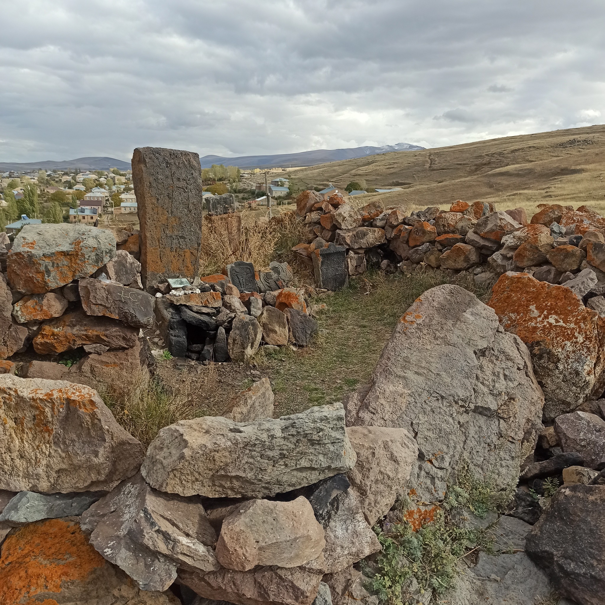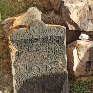 Առավել ցնցող են ավերակների մեջ իրար կողքի շարված միջնադարյան խաչքարերը, որոնցից մեկի վրա շատ պարզ նկատվում է Մեսրոպատառ շքեղ վայելչագիրը։